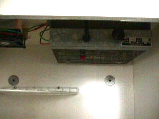 Mount heating element into top, inside of box using 1/4" wood screws. Wire Muffin fan to power terminals on heating unit and mount muffin fan inside to the top. Use small bird toy beads for spacers between fan and top of box. Mount the wire rack in the corner. We also use a digital Thermometer/ Hygrometer available from Radio Shack which is mounted low on the back wall at the approximate height the chicks will be.