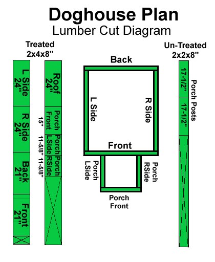 This doghouse is designed with the beginner in mind. It might even be a good project to involve the kids. The entire project requires only one sheet of plywood, two 2"x4"s and one 2"x2". All of these materials are available at your local hardware store.