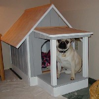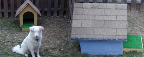 Note: The roof is not attached to the doghouse body. It sits on the body and is removable for cleaning.Congratulations! Your dog now has a new home. We hope you enjoyed the plans. Please let us know how the project went for you. We'd love to see a picture of how you decorated the house! (see below)