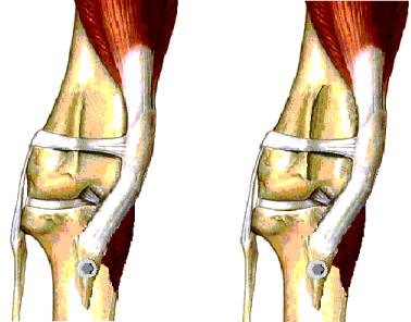 Lateral ligament placement. This involves placing nylon bands through the patella and its tendon and anchoring them to the outside of the knee joint.