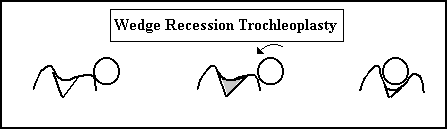 Wedge Recession Trochleoplasty (WRT). The groove in the femur where the patella lies is surgically deepened by cutting out a wedge shaped section. |