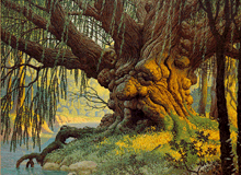 Old Man WillowThe old willow stands in the old forest east of Hobbiton. He is an ancient tree spending most of his time sleeping and dreaming. The hobbits accidently disturbed the willow in LotR and they were lucky to get away from there alive.