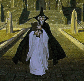 Saruman the WhiteSaruman the white (also known as Curumo, Curunír) was the leader of the Istari sent to Middle Earth to battle Sauron. He became obsessed with the rings of power and this lead to treachery. He wanted the one ring for himself. He gathered armies of orcs, uruk-hai and dunlendings to help him take over Middle Earth. He made a big mistake when he used Orthanc´s palantír. Sauron, who also had a palantír, caught him and enslaved his will. So it came to be that the leader of the Istari became one of Sauron´s allies. After the war of the ring he called himself Sharkey. He thaught that the name, which he had been given by the orcs, was a sign of affection from their side. He did not know that sharkû means "old man" in black speech.