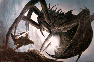 ShelobShelob is a giant Spider living in the pass between Minas Morgul and the Tower of Cirith Ungol. She is an ancient creature who has for a long time guarded the entrance to Mordor by her presence. She feeds upon orcs and other helpless creatures unlucky enough to get too close to her or her webs. When she met with Frodo and Sam, she was forced to flee for the first time in many years. Shelob in LotR was described as ´the last child of Ungoliant to trouble the unhappy world´.