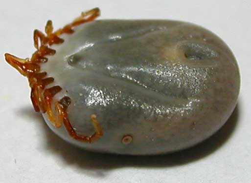 It was only weakly attached. It can be seen that the feeding tube, or hypostome, is still intact (ventrolateral view) indicating that the process of tick removal did not break it. It was, therefore, probably about to drop off.