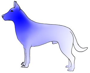 The darker blue areas indicate the higher chances of tick attachment (based on data tabulated in: Atwell RB, Campbell FE and Court E (2000): The Attachment Sites of the Paralysis Tick (Ixodes holocyclus) on dogs, Aust Vet Practit, 30(2); image source: NF, 2000. | ![]() ![]() |
