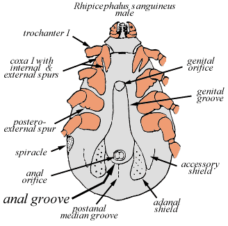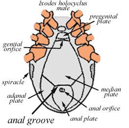 ticks, a groove adjacent to the anus. In ticks of the genus Ixodes
