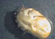 off the dog and moult to become nymphs. Nymphs are larger than larvae and can be