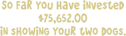 This figure does NOT include dog food, the initial cost of your dogs, entry fees, motel bills, general vet bills, toys and Many other ownership incidentals.